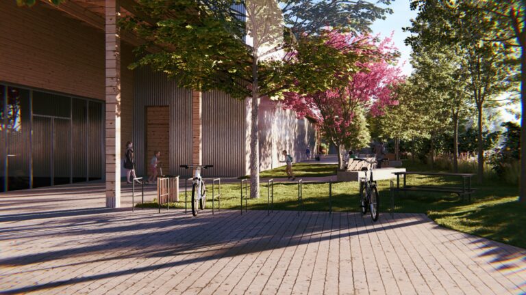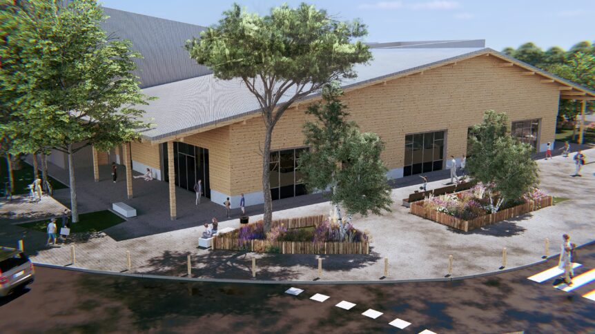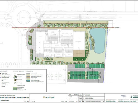 Aux côtés de Compagnie Architecture, nous accompagnons la création d’un nouveau complexe cinéma au cœur du centre-ville de Biganos. Le projet paysager a pour objectif de penser l’interface avec l’avenue de la Côte d’Argent grâce à un parvis jardiné, et la création d’une venelle piétonne et cyclable paysagée. La stratégie végétale vient créer un cadre ombragé et propice à la rencontre.
